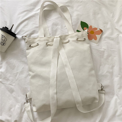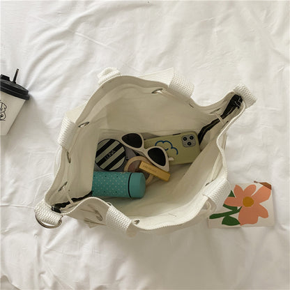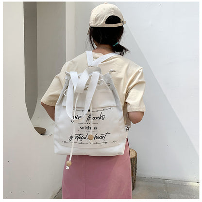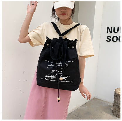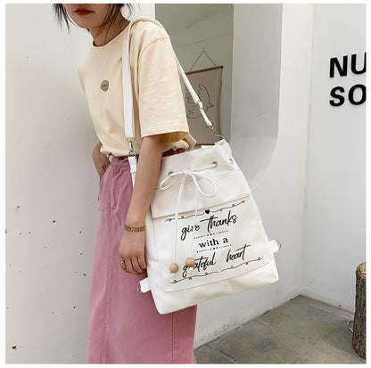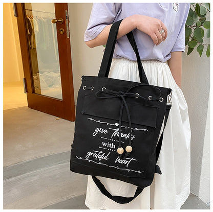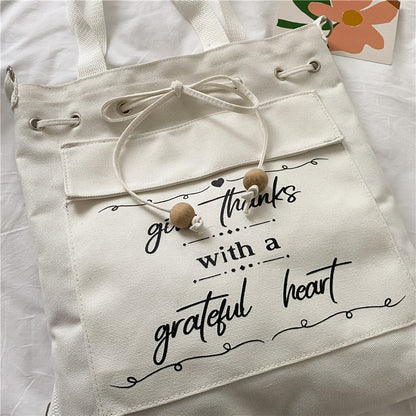 Letter Print Canvas Shoulder Bag with Drawstring