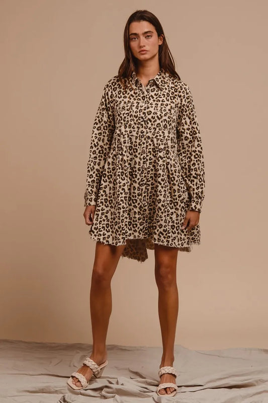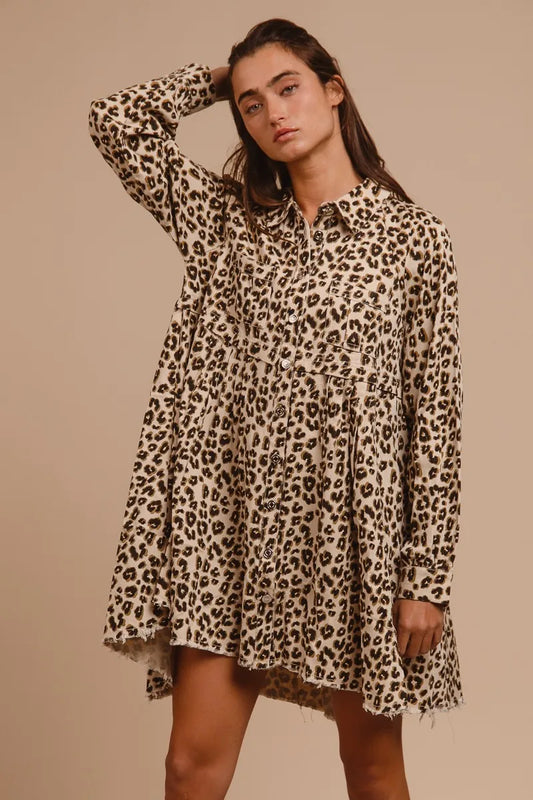 Chest Pocket Raw Hem Denim Loose Shirt Dress
