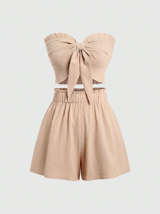 Solid Pleated Elastic Smocked Waist Mini Shorts