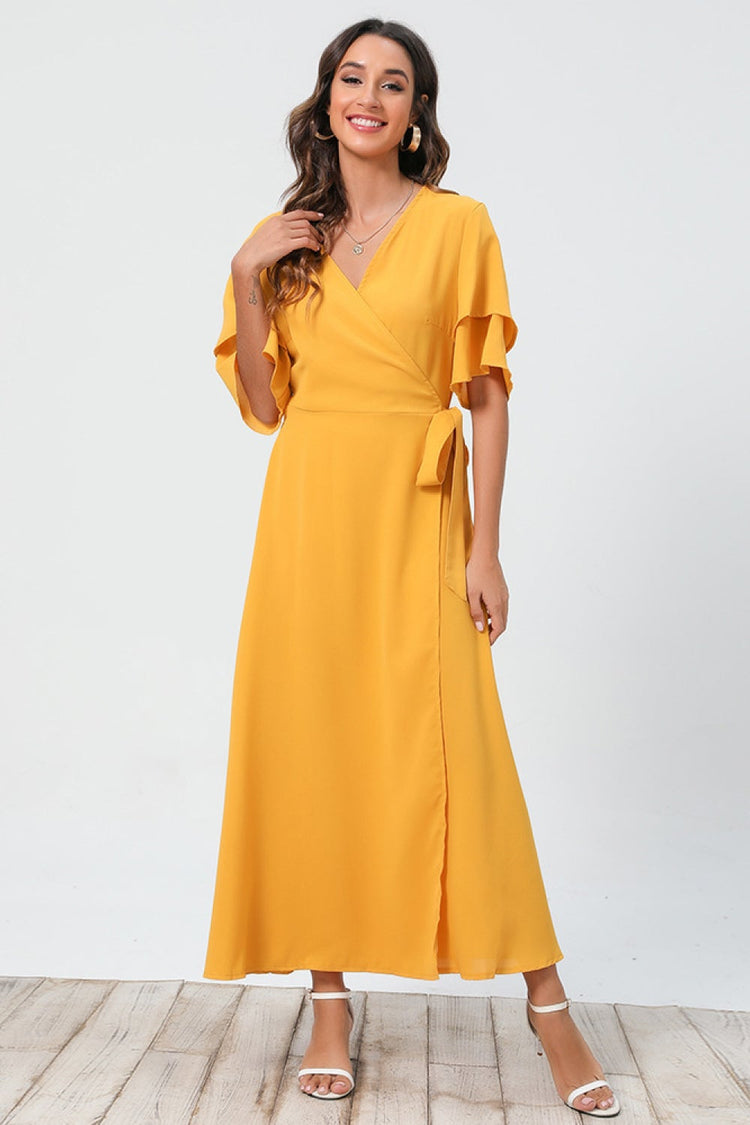 Plus Size Plaid V-Neck Long Sleeve Wrap Dress