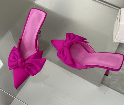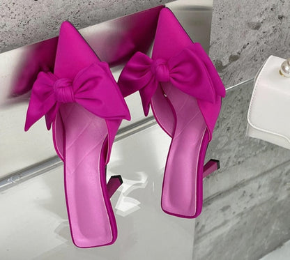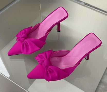 Butterfly-Knot Bow Pointed Toe High Heel Mules
