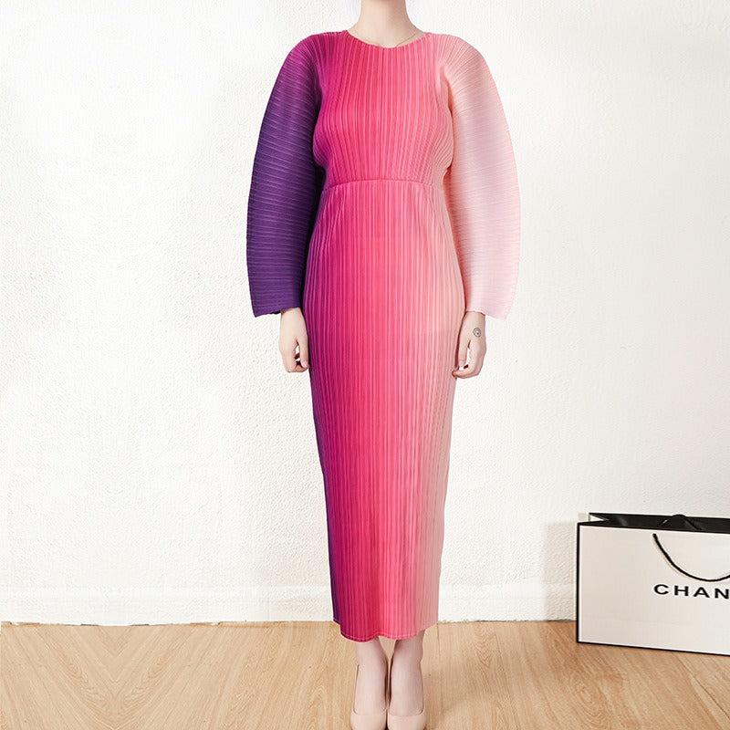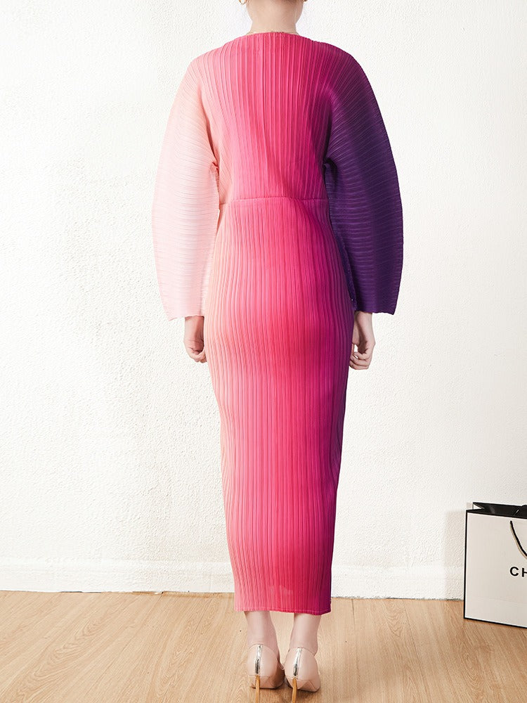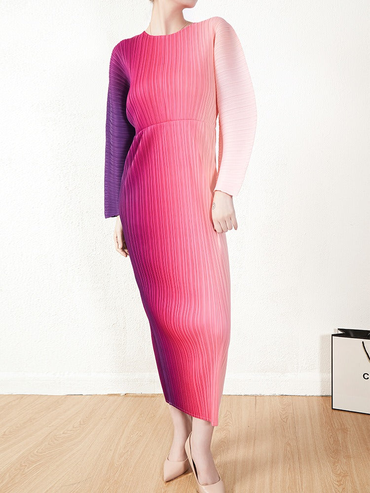 Miyake Pleated Gradient Long Sleeve Midi Dress