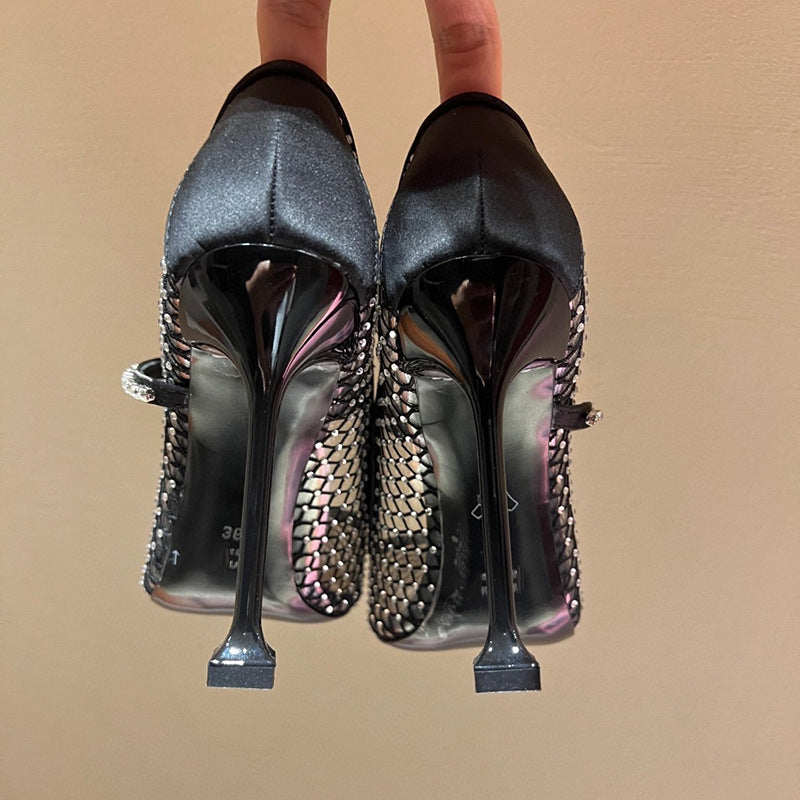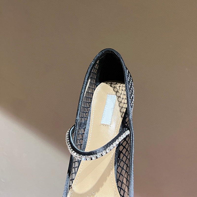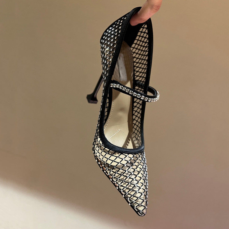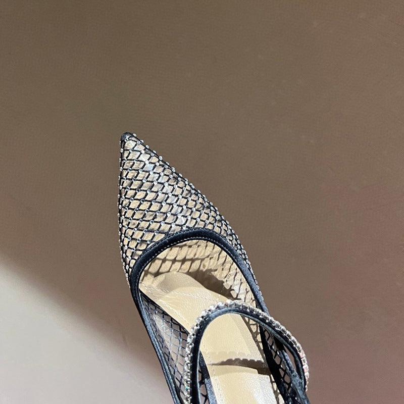 Rhinestones Mesh Pointed Toe High Heel Shoes