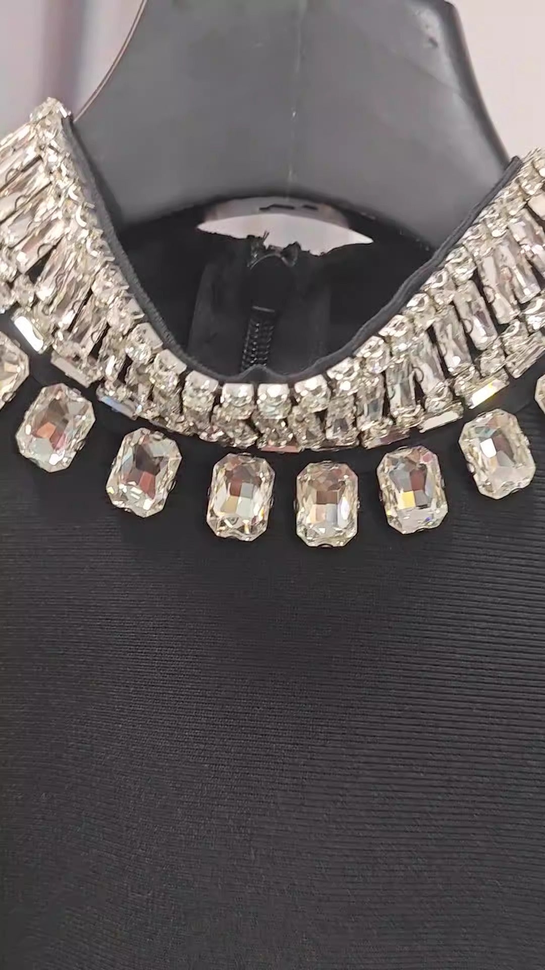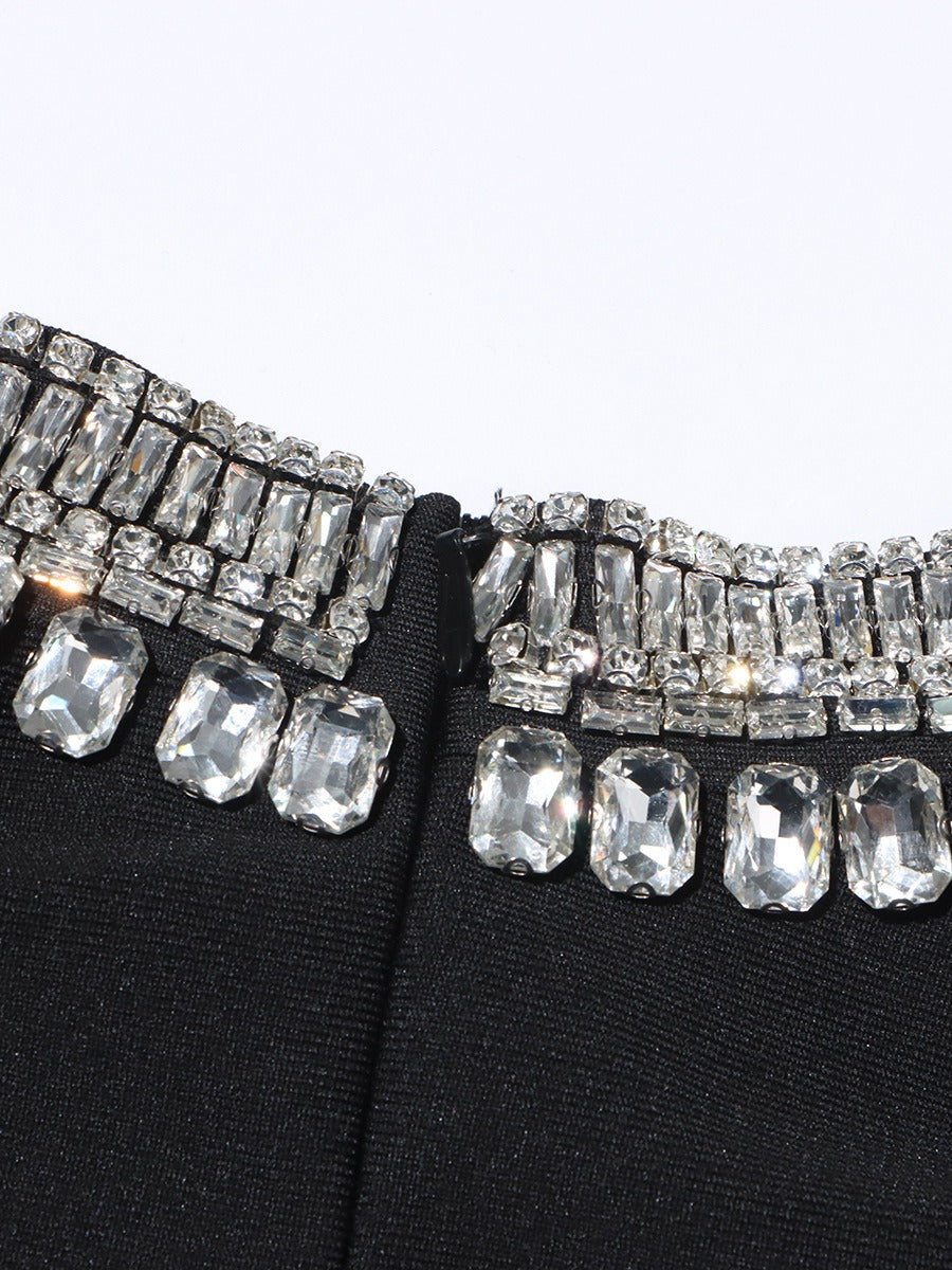 Rhinestone Turtleneck Long Sleeve Bandage Dress