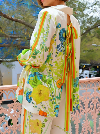 Printed Tie Back Shirt and Pants Set